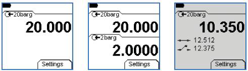 可选压力单位 | kPa、MPa、kg/cm2、psi、mbar、bar、inHg、inH2O、mH2O、mmH2O 和mmHg |