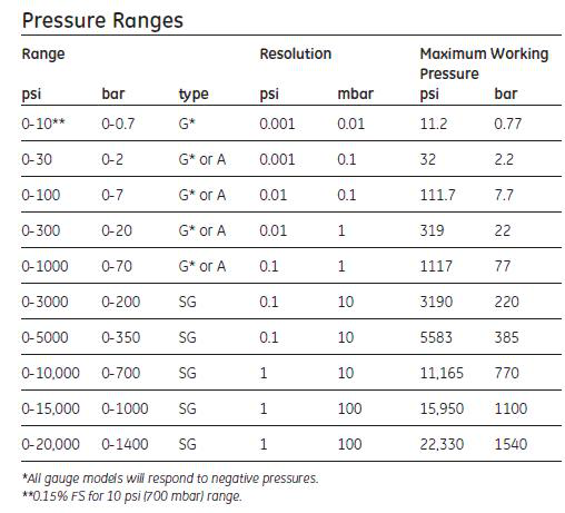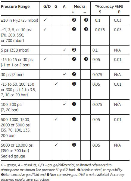 · 压力量程 10″ H2O~ 10,000 psi (25 mbar~700 bar)
