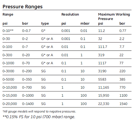 10~10,000 psi (700 mbar~700 bar): 2 x FS