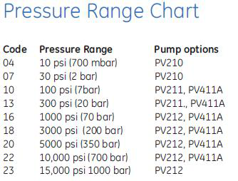 · 压力范围 10~ 20,000 psi (1400 bar)